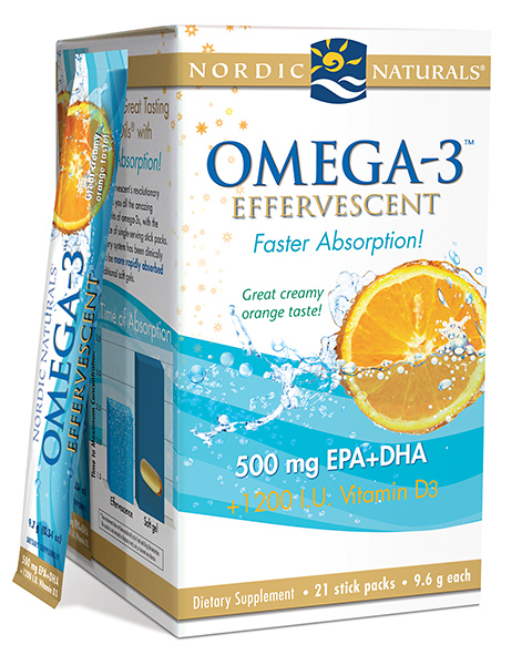 With this revolutionary delivery system, you won’t even know you’re taking cod liver oil. A water-soluble drink mix rich in the omega-3s EPA and DHA, Nordic Naturals Omega-3 Effervescent™ is clean on the palate and has a creamy orange taste. Now adults and kids alike can get all the amazing health benefits of omega-3s and vitamin D3—like heart, brain, joint, and bone support—without any hint of fish.* There’s no oily feel, no soft gel to swallow, and no gelatin—just the same industry-leading purity and freshness you can expect from all Nordic Naturals products. And the convenient single-serving packets let you drink your omegas any time and anywhere you want!